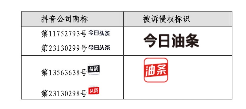 今日头条起诉称,“今日油条”在门头招牌、店内装潢、菜单、食品包装、员工服装、广告以及宣传材料等多处使用的标识,与“今日头条”在文字构成、整体外观及读音等方面高度近似,已构成对抖音公司驰名商标的复制、模仿。“今日油条”的广告语“关心你的,才是好油条”、“信息创造价值,油条给你力量”,抄袭、模仿和攀附“今日头条”。“今日油条”作为企业字号注册并使用,与今日头条商标高度近似,易使相关公众误认为其与抖音公司之间存在关联关系、许可关系或其他特定联系,侵害了抖音公司注册商标合法权益,构成不正当竞争。